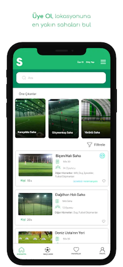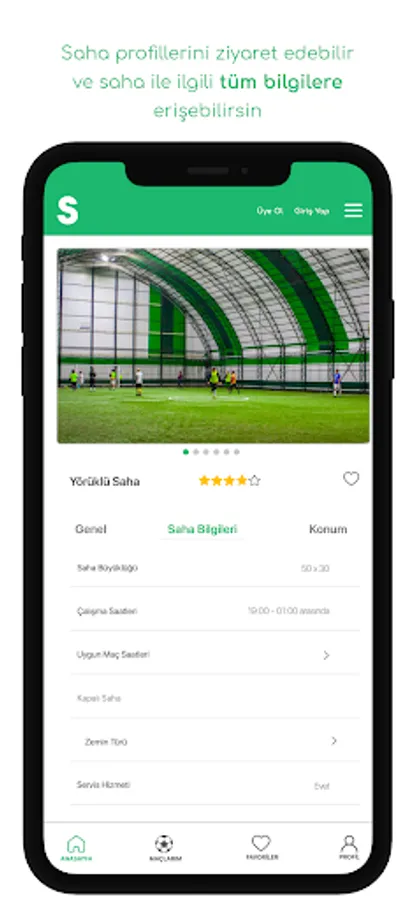 The Field application is a service organization that offers a free and unique marketplace to businesses that carry the football world to the carpet pitches, and also quickly and easily meets the reservations of football fans in limited time.