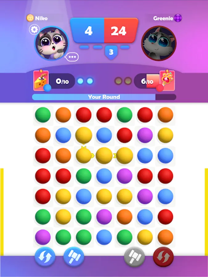 Each booster has their own magic ability. Fill up the booster by matching the dots with the assigned color. Unleash the boosters with right timing to gain the advantage in the competition. Use your match strategies in the game to become a match expert! Battle against other rivals online and compete to be the best match master in the match 3 PVP game.