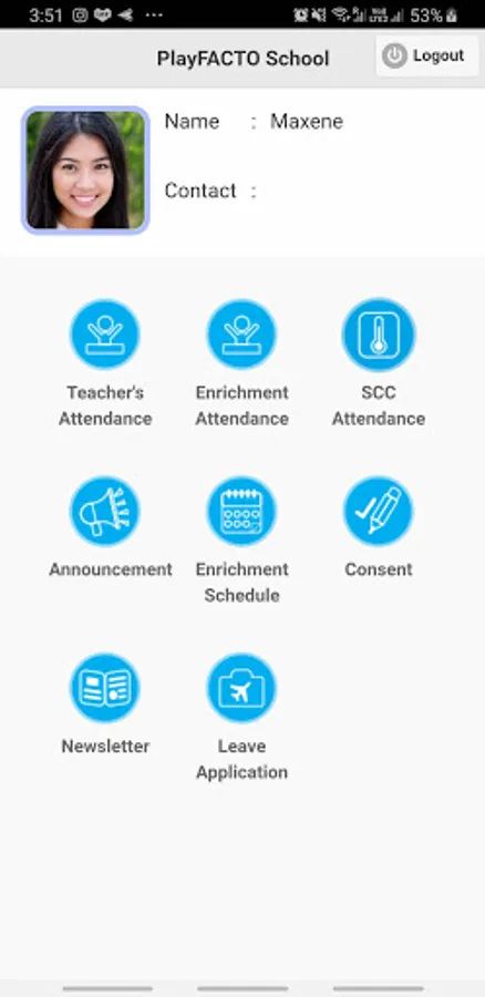 PlayFACTO School Teacher has functions for teachers to take attendance, apply for leave, and receive announcements.