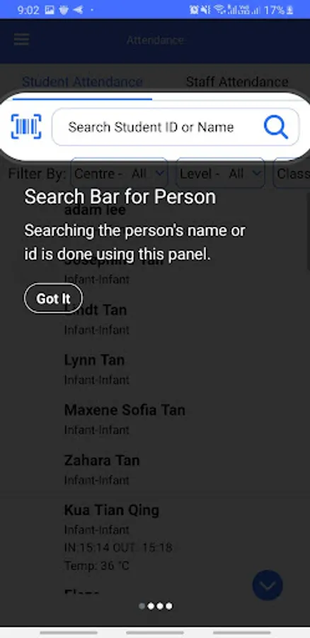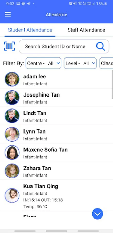 With the BridgED Attendance, the centre can capture and record the centre visitor, student and staff's attendance and temperature record.