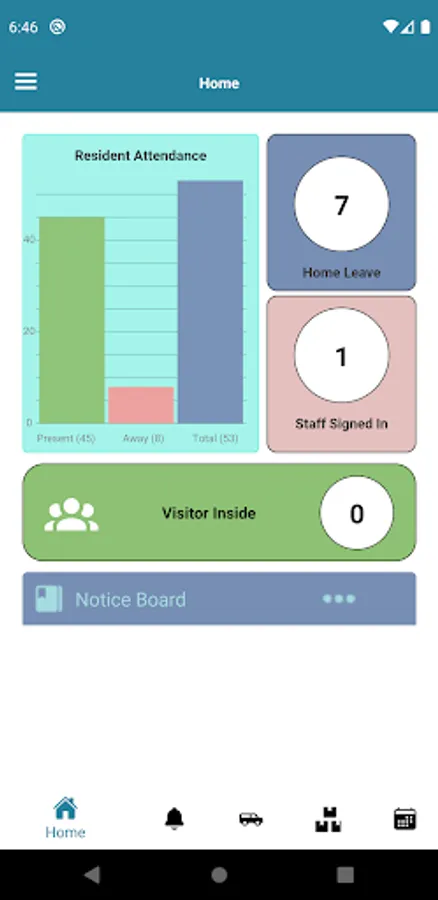 Application for staff to capture and view their own attendance, and receive announcements. Also, this application is used to capture the home resident's attendance, symptoms check, incident reports and exit permit.
