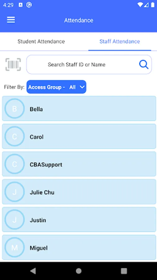 Attendance tracking for staff and students: Easily take attendance for both staff and students in just a few taps.
