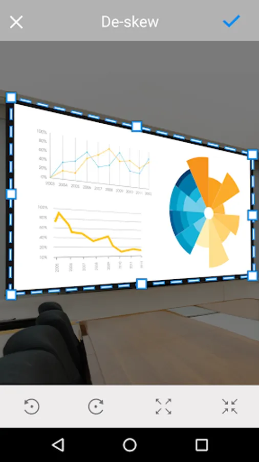 Capture slides from overhead presentations, meeting notes, whiteboards, business cards and business receipts in one simple snap.