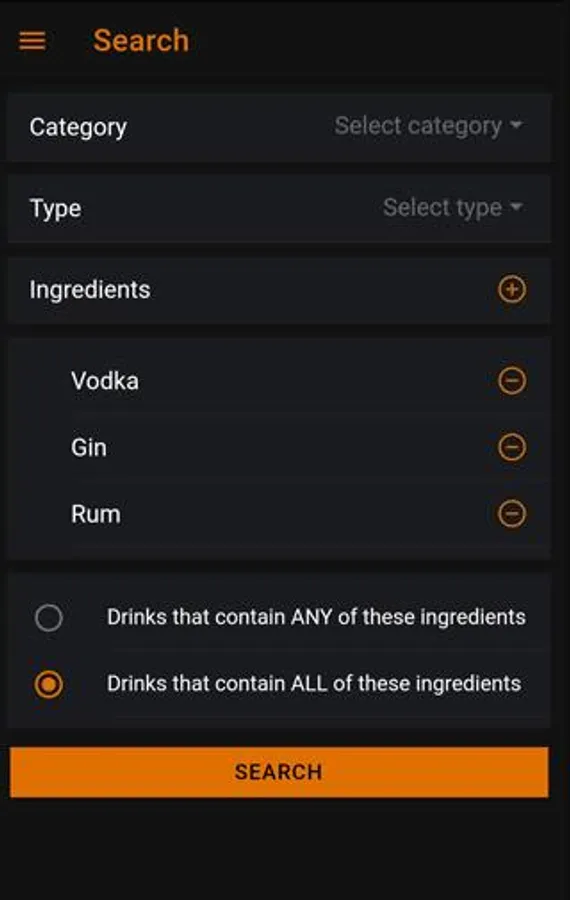 Choose from anywhere the option to filter and find your beverage based on what you want to drink or also based on the ingredients what you have on your bar and your kitchen.