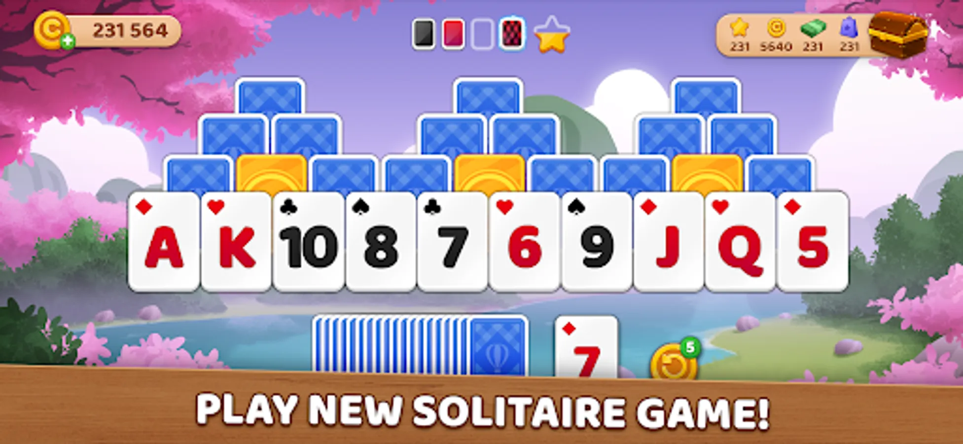 Enjoy your journey through Cloud City, tripeaks solitaire free puzzle adventure is going to begin! Great Solitaire cruise through different islands: Ancient Egypt, grand harvest in the sunny farm, cold Arctic, solitaire cruise to tropical island, Wild West, Mexico… Enjoy beautiful landscapes in Solitaire free.