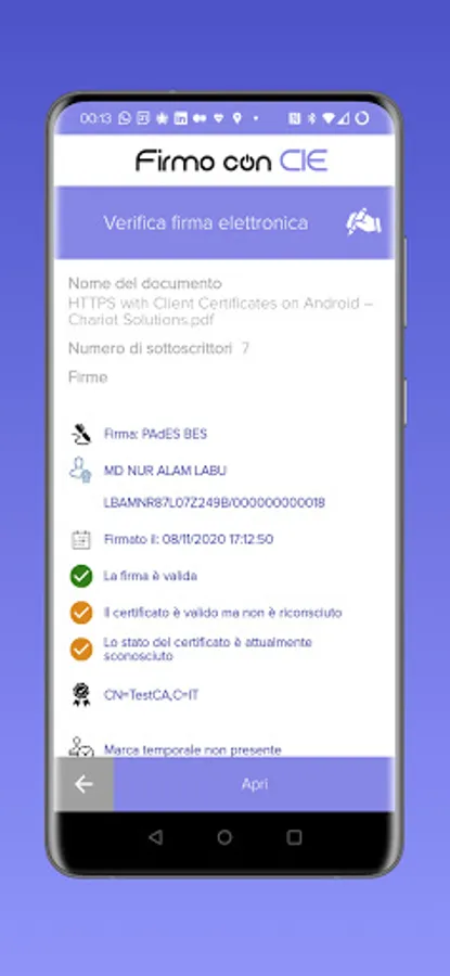 Some electronic signature verification software widespread on the Italian market does not correctly verify the electronic signature affixed with Firmo con CIE (erroneously reporting that the signature is not valid) as they do not correctly implement the directives of article 61 of the DPCM 22/02/2013 and the European directives eIDAS.