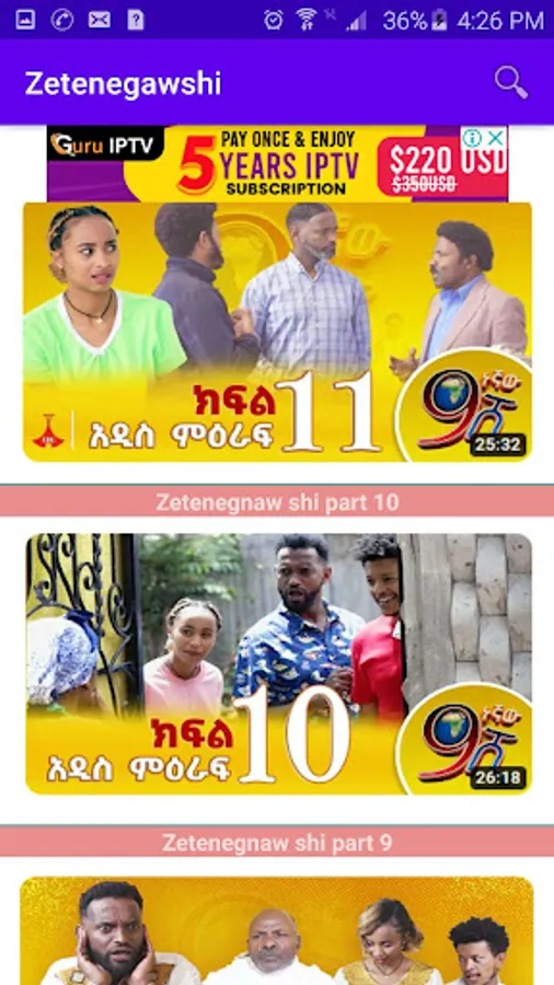 This app contains all series and episodes of zetenegnaw shi ethiopian comedy film.