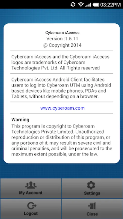 The Cyberoam iAccess is an app intended to provide seamless authentication to a user into the Cyberoam (Next-Generation Firewall/UTM) protected environments.