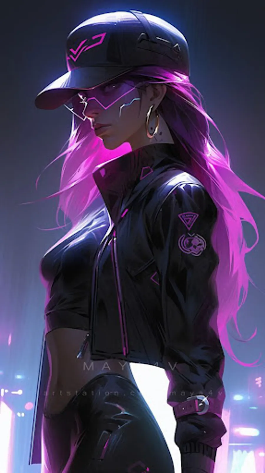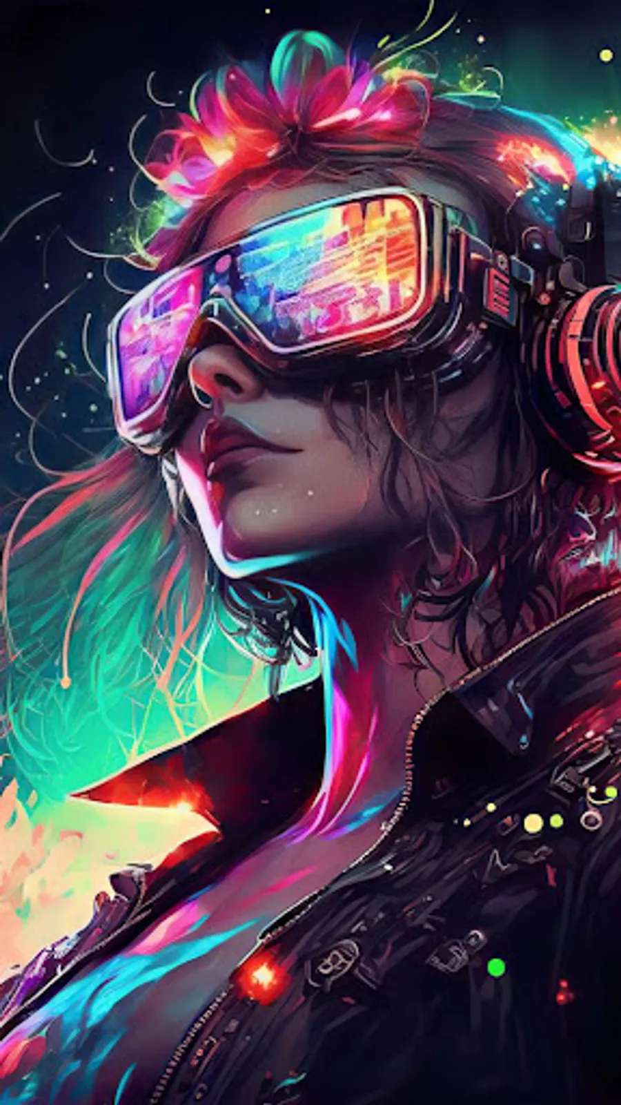 With strong visual power, this wallpaper is suitable for fans of the cyberpunk genre, tech lovers and everyone who is attracted by a futuristic, dark and mysterious aesthetic. It is an eye-catching digital artwork that can make an attractive highlight for your device screen.