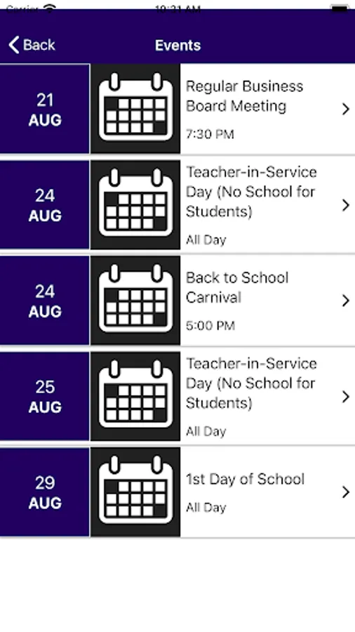 This App has Direct Integration with the District websites. Contact information, Schools Information, Staff List, Calendar & News are updated automatically. This Mobile App enables the District to push news about school activities, critical announcements, bulletins and events on a daily basis, and provide parents, students and staff with important information they need every day.  Push Notifications can now be sent directly to the home screen of every parent and student in the District.