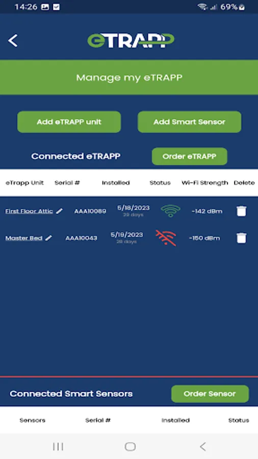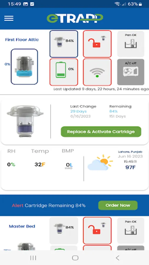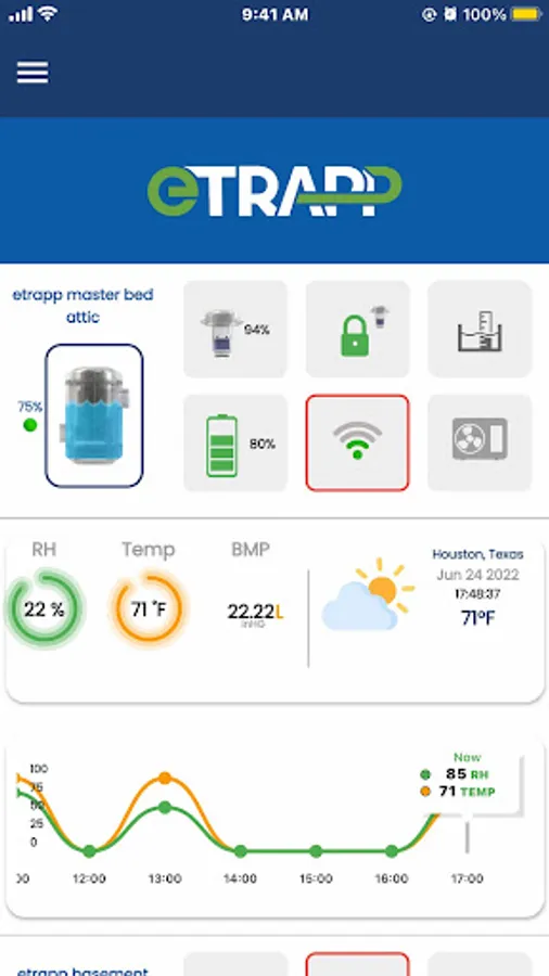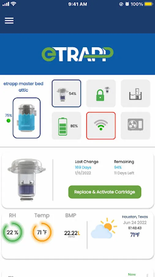 The eTrapp, eDelta’s patented condensate treatment system provides the technology to prevent growth of algae, fungi, and other organic compounds that create clogs in air conditioner (A/C) condensate systems. The eTrapp, uses state of-the-art proprietary sensing, condensate treatment and monitoring to provide continuous performance feedback via a wireless internet connection in the home. The performance data is available through an app running on a personal computer or mobile device/smart phone. Users can enable alerts that will automatically inform them of any flow irregularities or if a cartridge change is required. The eTrapp system will prevent expensive repair bills and finally solves the root cause of the long-standing problem of flooding caused by clogged condensate drain lines