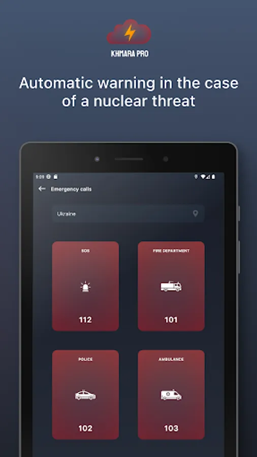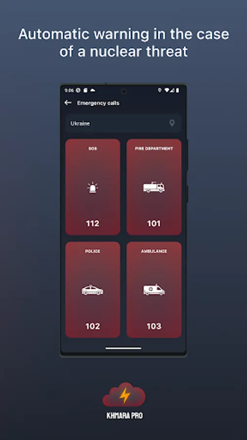 • The app includes emergency call buttons for the selected country, as well as recommended actions in case of a nuclear explosion to increase the chances of survival