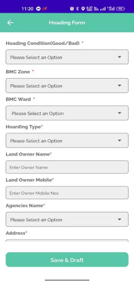 Searching hoarding from a map location and survey the all details about the hoarding. hoarding condition or status fill all data in the hoarding form. and upload the data to the server.