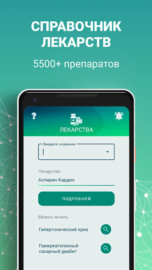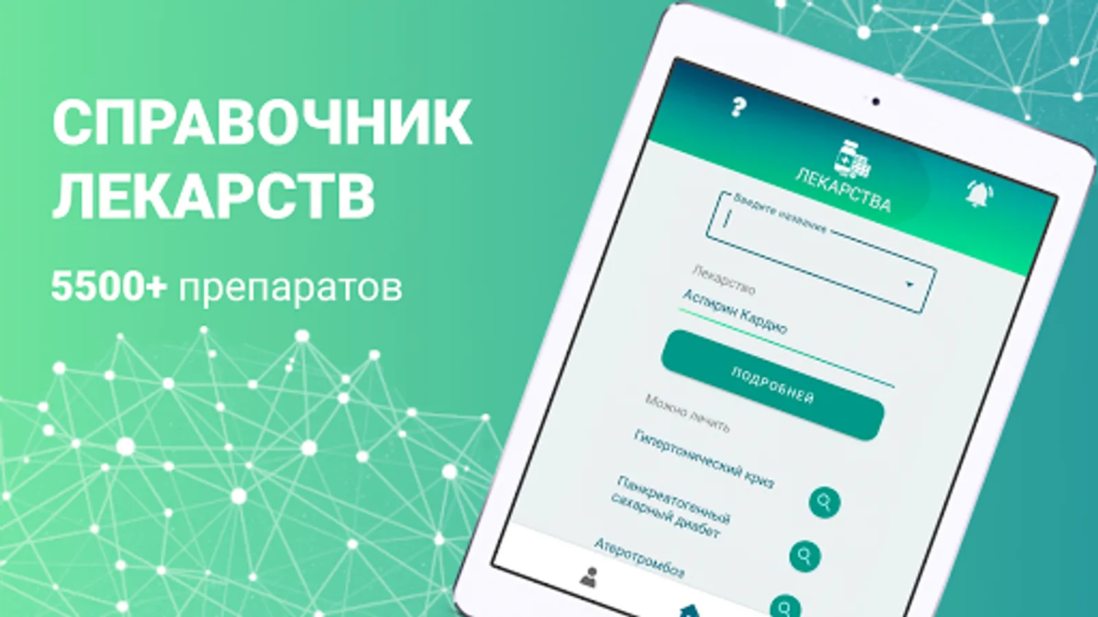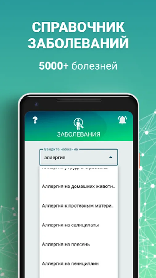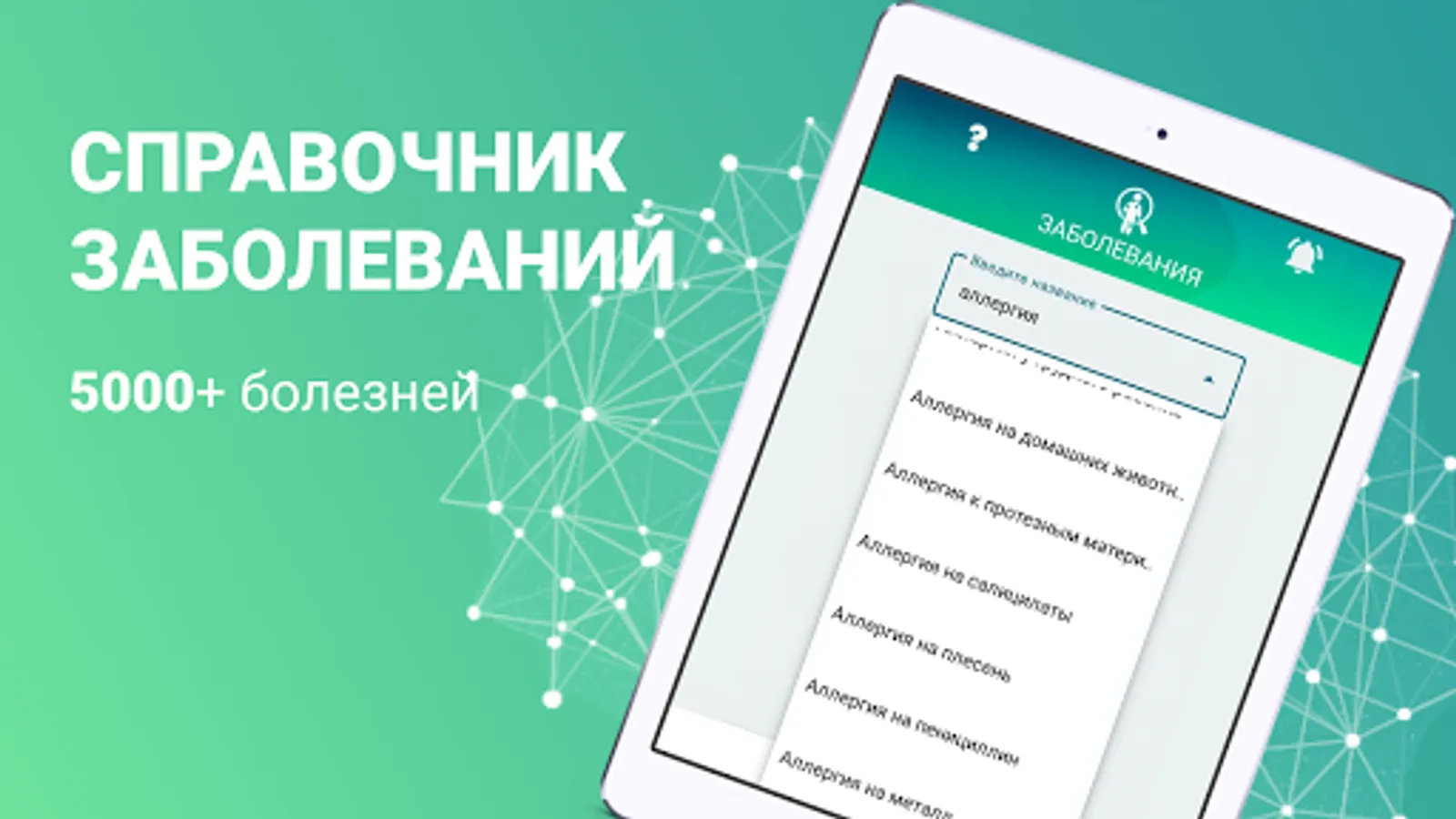 ✅ Directory of diseases (more than 5,000 diseases): a detailed description of the symptoms and a list of drugs for treatment.