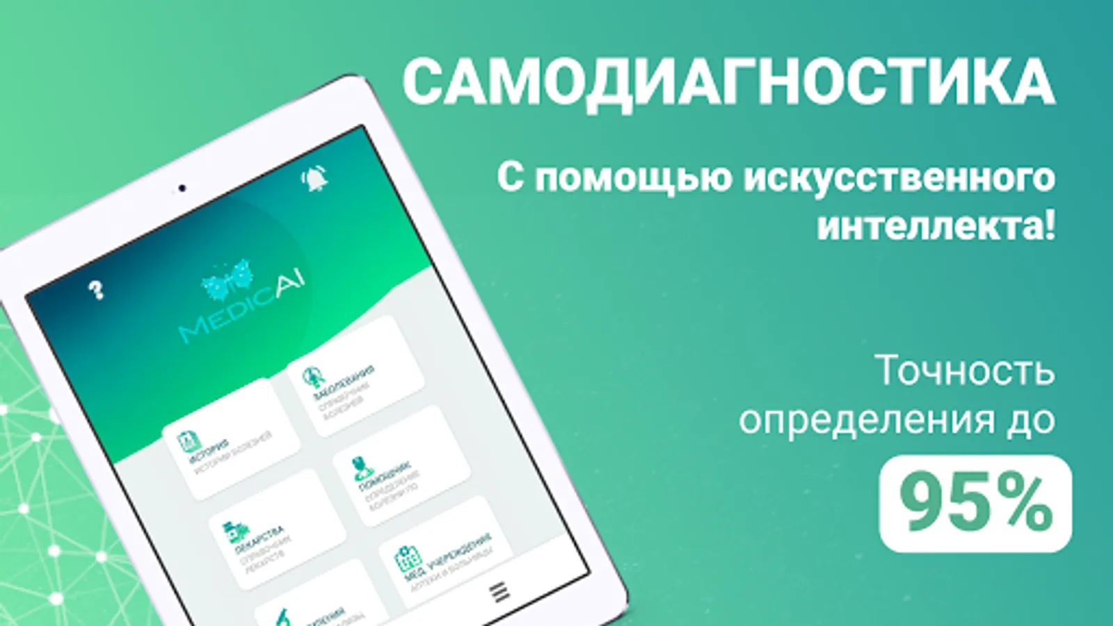 MedicAi is based on artificial intelligence , which diagnoses diseases based on symptoms. The neural network will be able to determine the disease with an accuracy of 95% by symptoms, predict the further development of the disease, give recommendations on their prevention and health care.