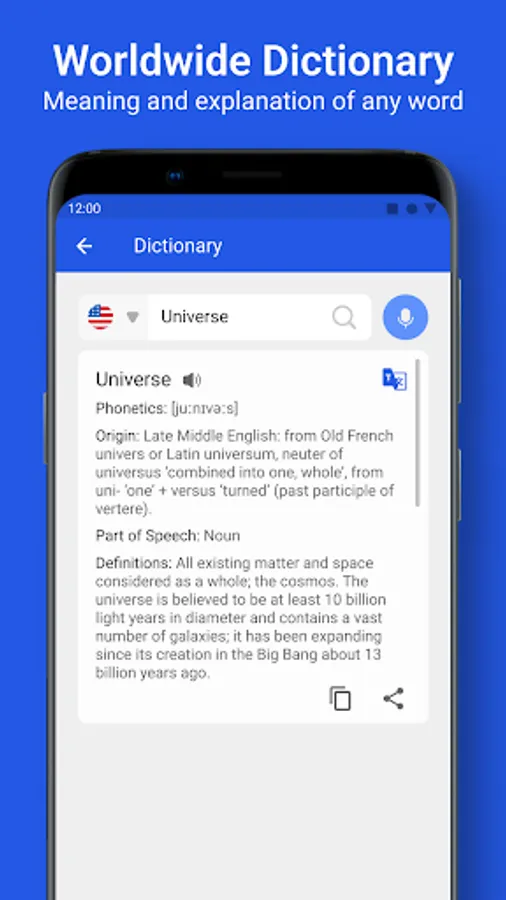 - Learn new words and their meanings through usage examples in the app’s dictionary (available for most of the currently supported languages).