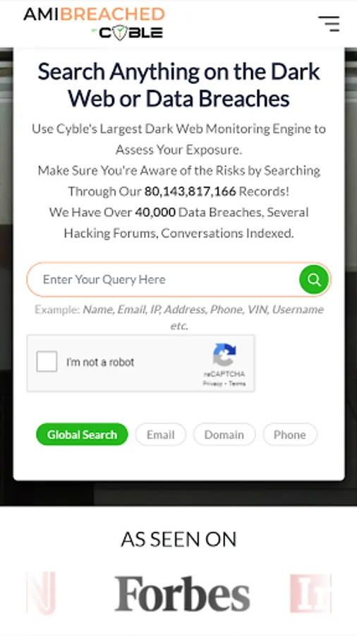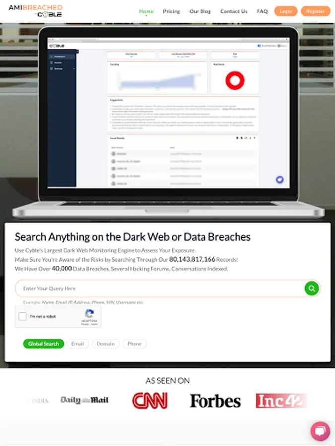 AmIBreached is World's Largest Data Breach and Dark Web Monitoring & Notification Platform Created By Cyble .Inc