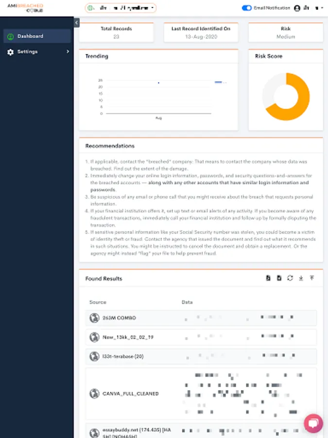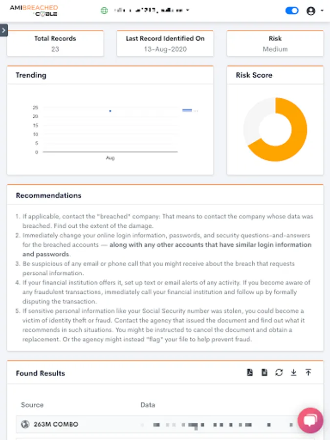 We will never trade your information on the dark web! We acquire information through various sources to inform you about the threats. But most importantly, no one else can look into your information.