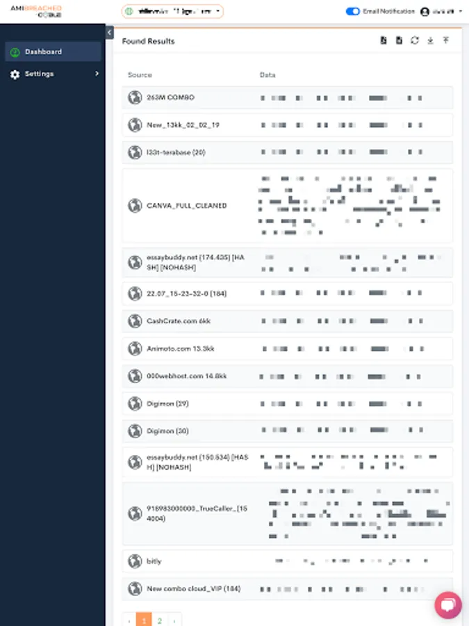 Our researchers continuously monitor the public Internet and Dark Web to find credential leaks, conversations in the cybercrime forums, chats and immediately report details on any compromised email/username for your customers, employees, or partners
