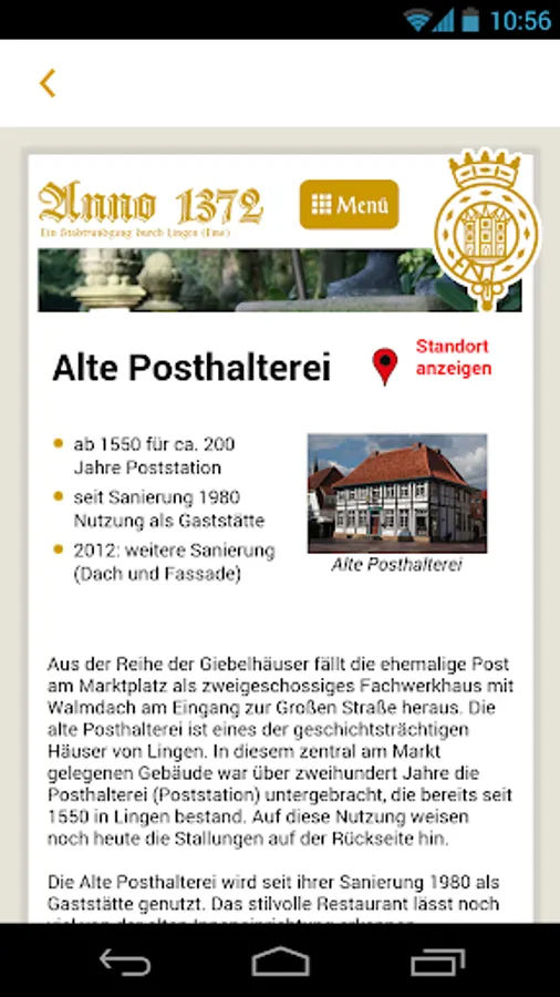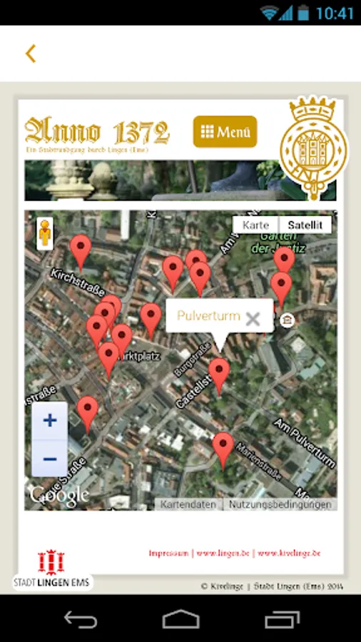 "Anno 1372" is where you can feel the history of the city of our beautiful home, a tour of Lingen (Ems). From Kivelingshaus on the Historic Town Hall to Professor place you want to take "Anno 1372" with a trip through time and make the history of individual stations experienced .