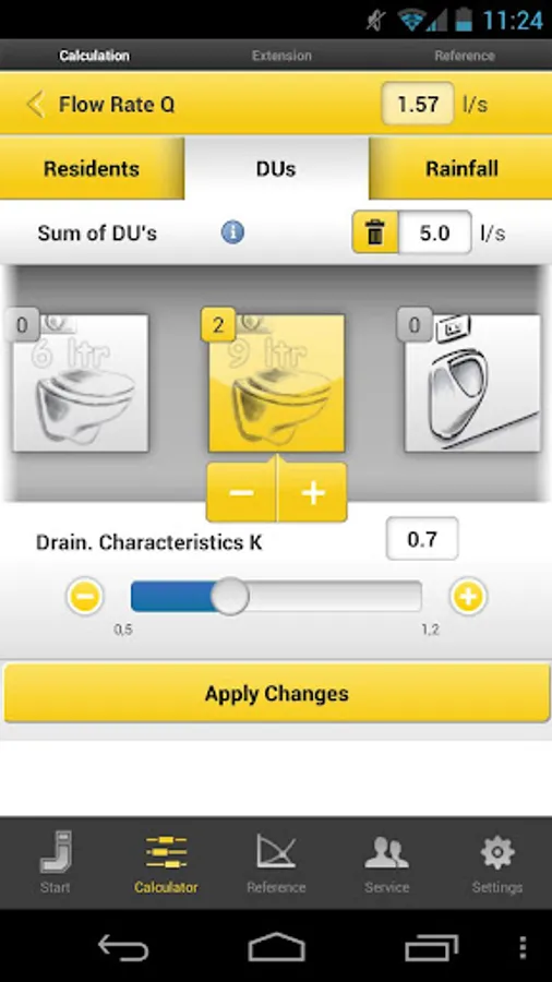 - selection list of common drainage fixtures (e.g. toilet, washbasin, etc.)