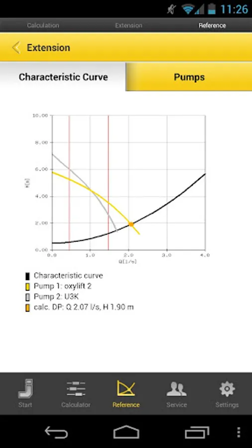 The App guides you intuitively through the selection process. Once the hydraulic data, the medium to be conveyed and the planned installation location have been defined, a selection will be made from proper wastewater pumps of the company JUNG PUMPEN. The unit’s characteristic curve as well as the pump’s characteristic curve will be issued mathematically and graphically.