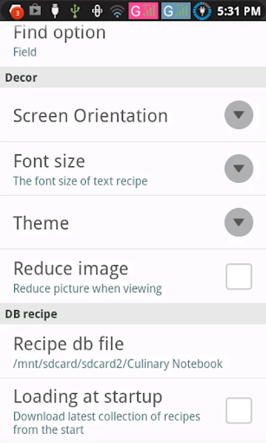 • Convenient live search (immediately displays the results) recipes, integrated into the android search. Search supports multi-word search and selection of search fields.