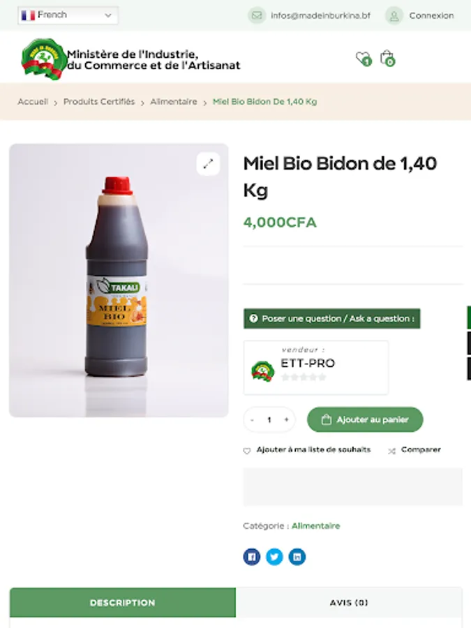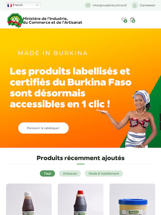 Powered by the Ministry of Industry, Trade and Handicrafts (MICA), Made In Burkina is the official digital platform for the promotion and marketing of labeled and certified products from Burkina Faso.