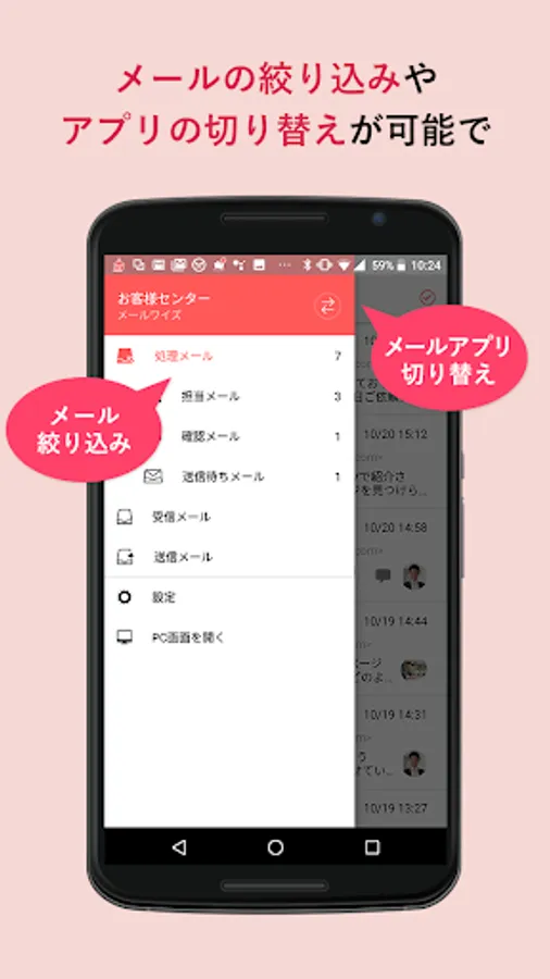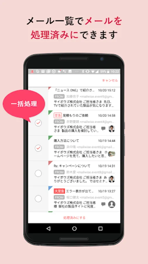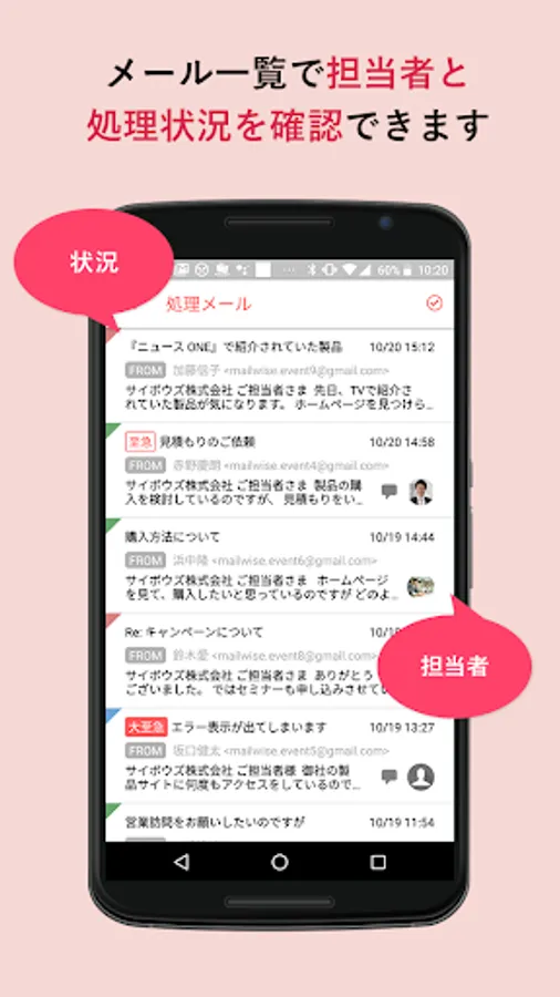 "Mailwise" is a free official app that allows you to check new notifications, email replies, and processing status of the cloud version of "Cybozu Mailwise" provided by Cybozu.