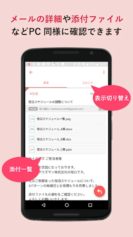 You will receive push notifications such as new emails, and you can also write comments and reply to the emails you receive.