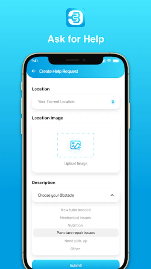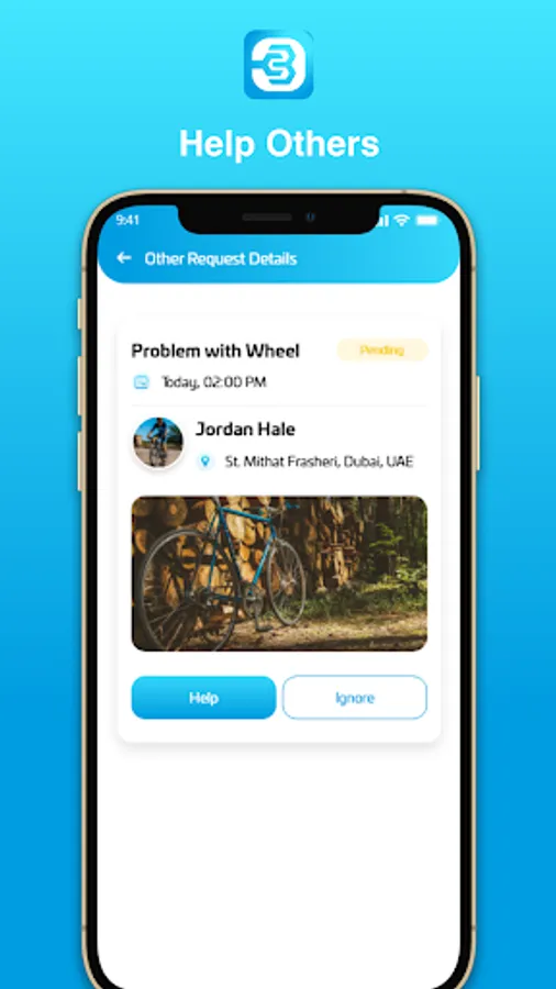 Cycle buddy is an app for cyclists. It is an extra layer of help in case of mechanical issues, or other technical issues with the bike or even health issues that the cyclist might encounter. It gives the cyclist the tools to request help from other users that might be in the area in the event of cycling solo or not being able to contact someone they know. It is particularly valid for solo, audax riders or for cyclists cycling outside their local area or even country. With time as the app grows there will also be a database of shops that users can see in the app. This shops will be able to advertise any offers available to users. When cyclists request help all riders who have that particular cyclist within their preset range will get a notification and will be given the choice to offer help. Once the help is offered its upto the person requesting to accept. Only then will he share his/her exact location. The helper and helpee can then chat on the app. Once the help is complete the chat will disappear. There are no profiles of users viewable or no social network type befriending or following feature.