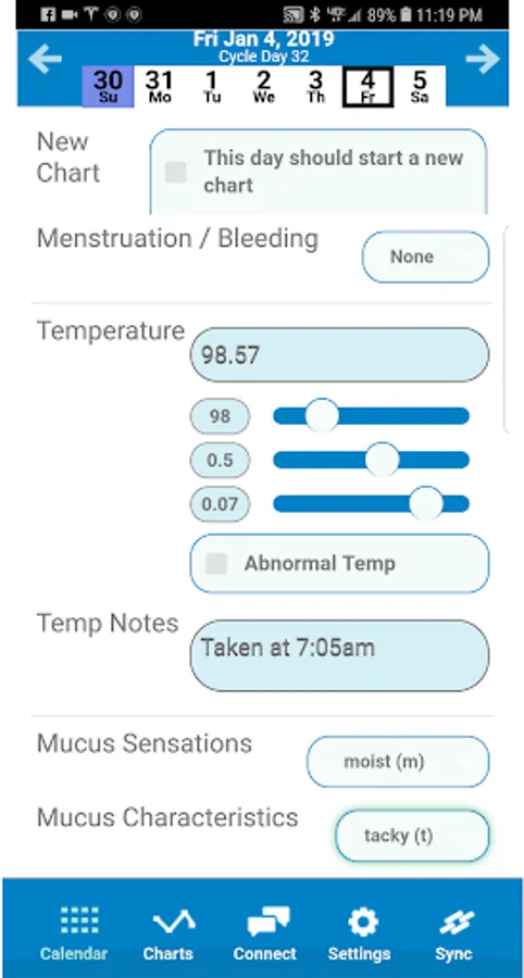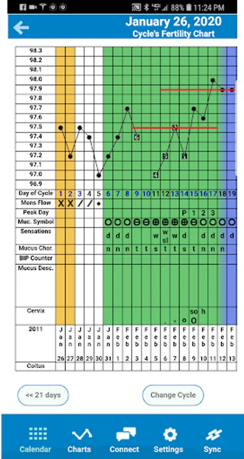 » Recording of fertility signs (mucus, temperature, and cervix)