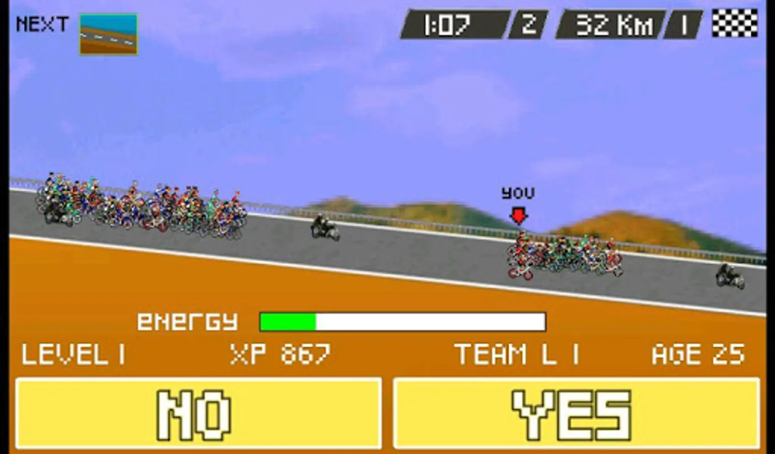 You have to choose between attack or wait in all stages and races that a professional cyclist runs in his career. Increase your experience eXPerience in descents or in the mountain by training, but also by getting into the escaped group and of course if you get that awesome leaders jerseys.. sign for other level teams.. is not at all an easy game..