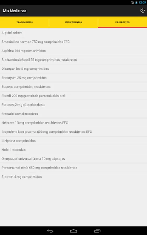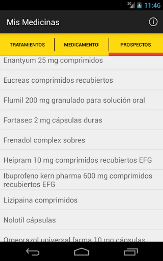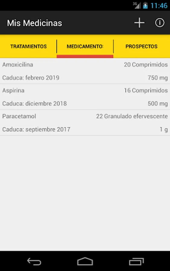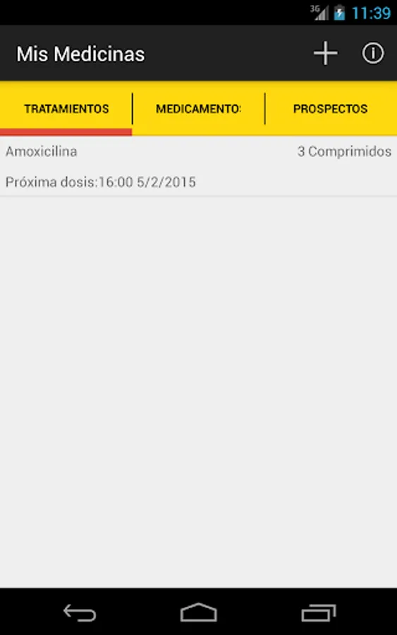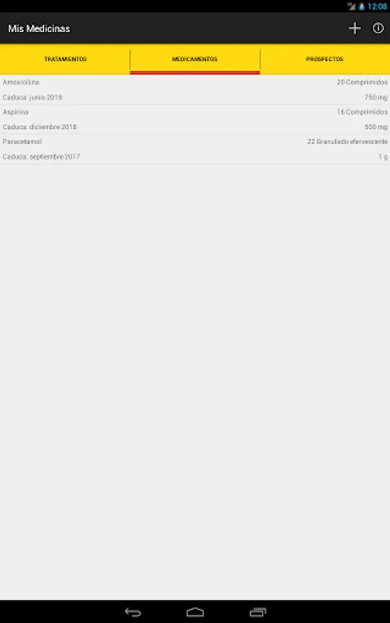 Clear and simple way you can add, modify and delete medical treatments, whose alarms will automatically adjust to your needs. You can also keep track of your inventory of drugs and expiration date. Finally from the application you can access a database of prospects of these medicines, to consult in case of doubt.