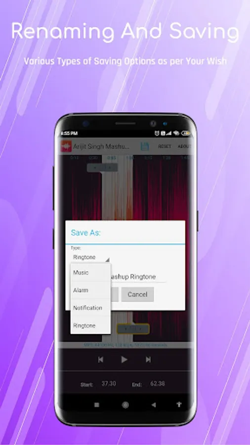 Option to name the new cut while saving it as ringtone / music Alarm / notification tone.