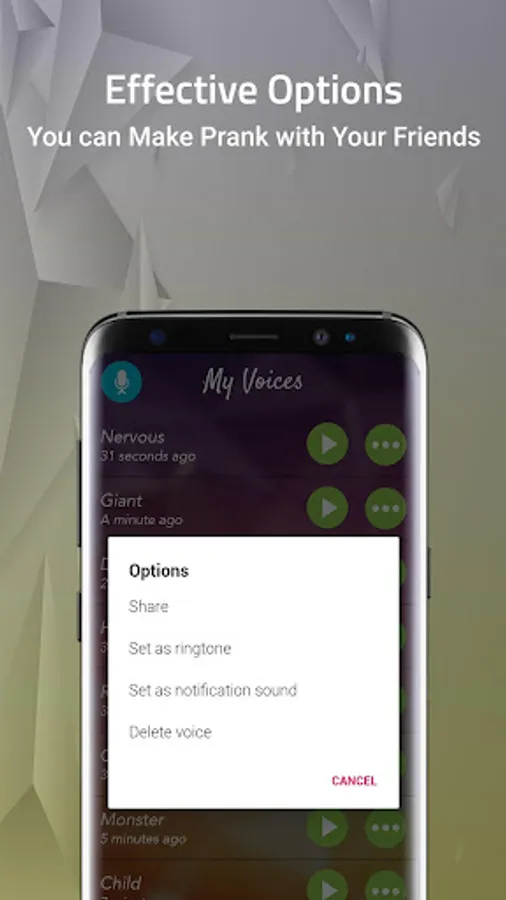 You can enjoy all the below given effects and you can make prank with your friends surprise your family and can have lots of fun. Apply the multifarious Sound Effects and choose your favourite effects.