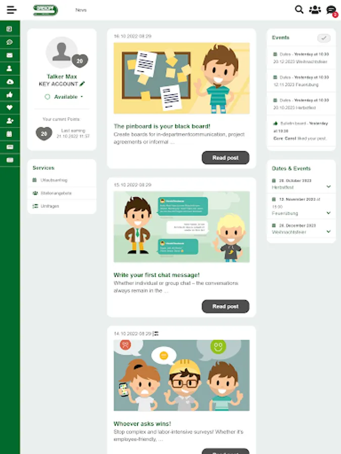 With the internal messenger you have the opportunity to chat directly with your colleagues and share personal experiences or ideas