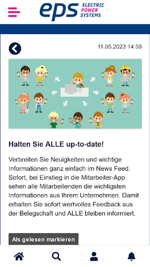 With the app you are always up to date in your company, you have an overview of appointments and you have important forms at your disposal. Using an internal messenger, you have the option of chatting directly with your colleagues and posting personal experiences or ideas on the virtual pinboard. The app looks similar to a familiar social media environment and is therefore extremely easy to use.
