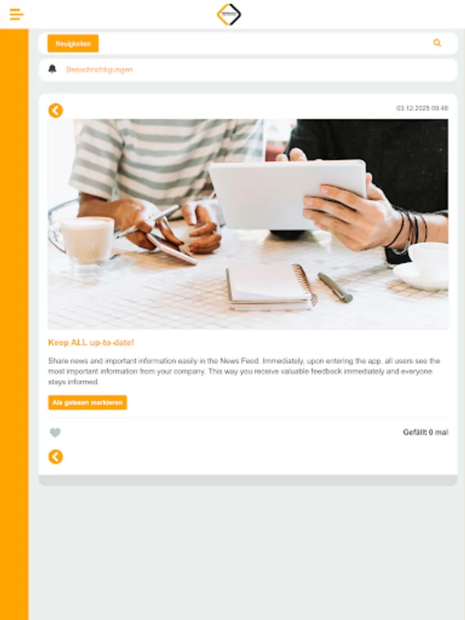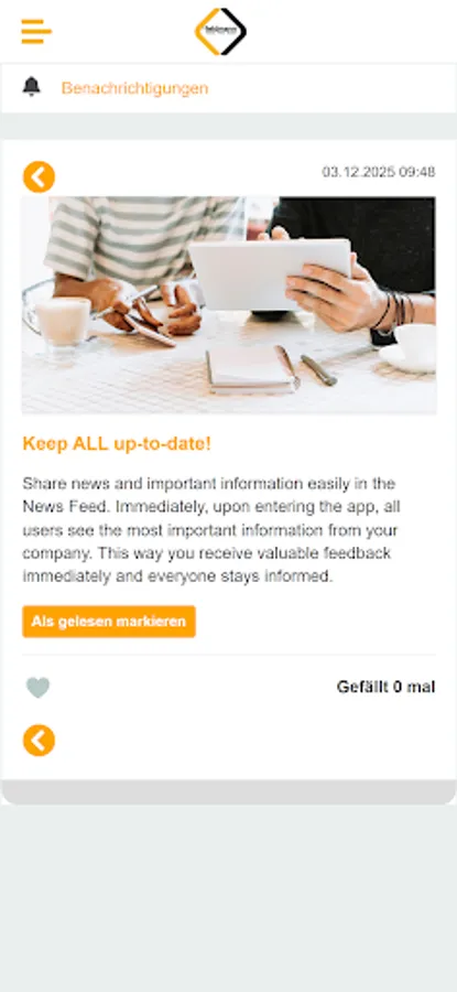 With the Feldmann Bau app, you're always up-to-date on attractive employee benefits and all the important news from your company. Download your tool for internal communication and collaboration and get started: Stay informed with personalized updates, connect with colleagues, and use the app for direct communication.