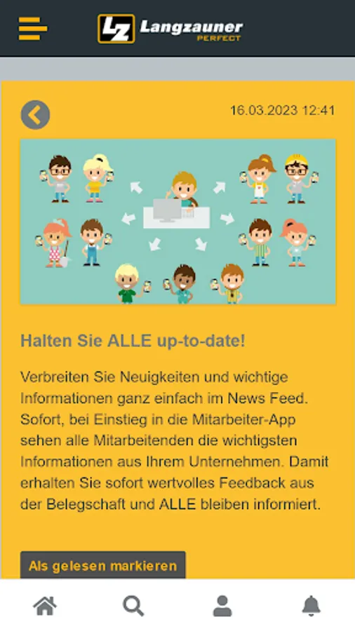 Whatever happens within the company, you will find out first in the employee app. Using an internal messenger, you have the opportunity to chat directly with colleagues and to post personal experiences or ideas on the virtual pinboard. The app looks similar to a familiar social media environment and is therefore extremely easy to use.