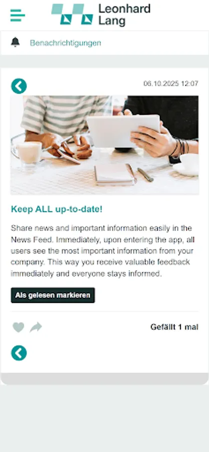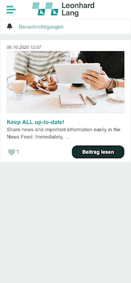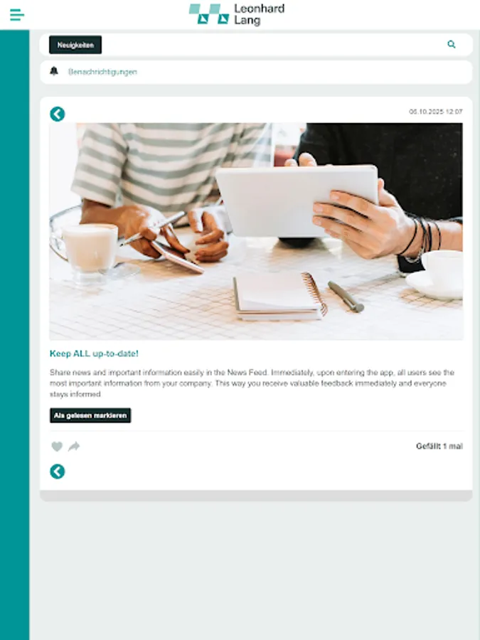 With the LangNet app, you're always up to date on attractive employee offers and all the important news from your company. Download your tool for internal communication and collaboration and get started: Stay up to date with personalized news, exchange ideas with colleagues, and use the app for direct communication.