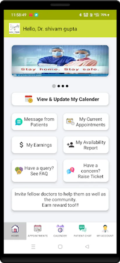 "My family doctor - DOCTOR APP" is for the doctors who can provide effective consultation over the internet to the everyday medical requirements of people such as mild fever, cold, pain, hair-fall, blood pressure, digestion, diarrhea and other non-emergency situations. You must be a certified doctor either MBBS, BAMS (ayurvedic), or BHMS (homeopathic) doctor, who is legally allowed to practice in India to use this app.