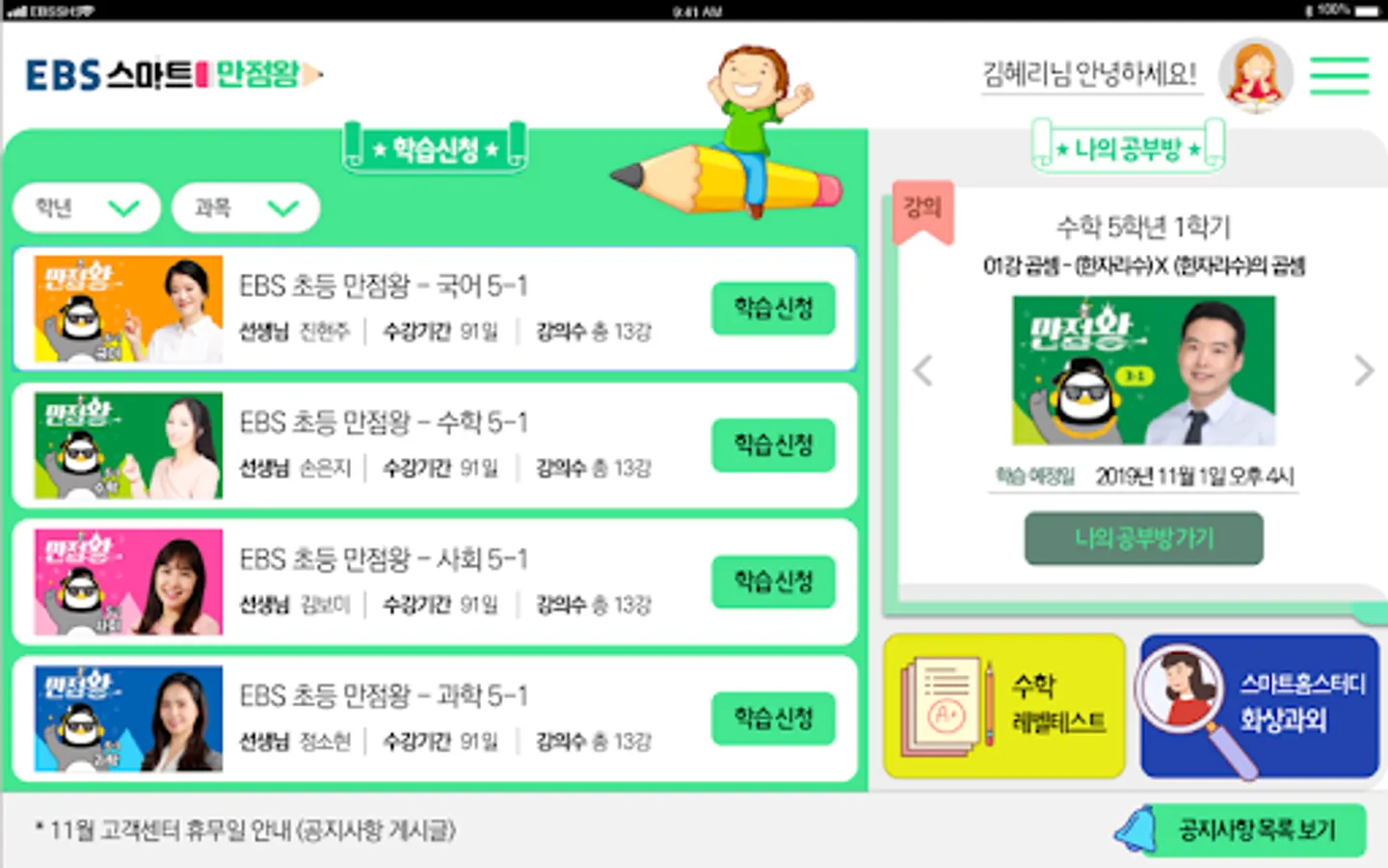 The King of EBS Smart Scores helps complete learning without gaps by providing the highly reliable EBS elementary school students and the incumbent textbook writers.