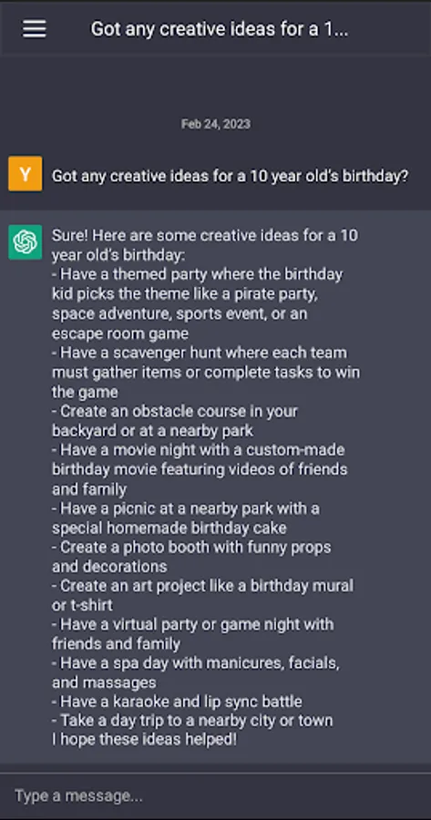 One of the main features of the application is that as an AI writer. It can understand and answer many types of questions because the AI system has been trained through a machine learning process with a large amount of data. This also makes it a perfect personal AI assistant to understand and respond to a variety of inputs in the most natural and human-like way. Whether you want to chat about a specific topic, ask for information or need help with a task, chatbot AI will always answer you quickly and accurately. You can also copy responses from the AI chat bot and share them quickly. Chat AI is an expert in every field, for example with a few prominent areas: