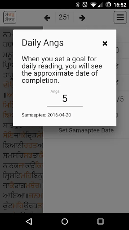 Use the all-new Sehaj Paatth feature to keep up your progress in daily reading. Enter how many Angs you would like to read every day and get back an estimated Bhog date OR if you enter the date by which you would like to do Bhog, you will get back a number of Angs to read every day for that to happen.