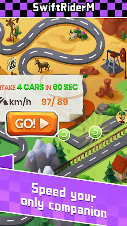 Do you have the need for speed, daring and reflexes to master each mile? Buckle up for a thrill ride now in Swift Rider! When the light turns green, speed is the only thing that matters - victory and motorized mayhem await around every turn! Leave rivals and regulations behind - claim your crown as road king today!