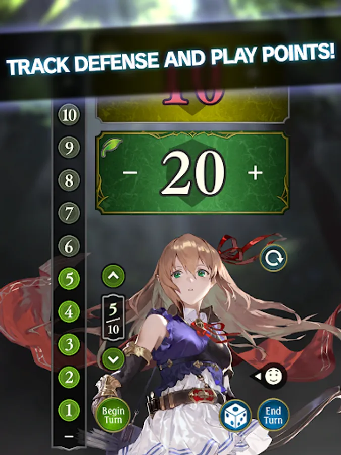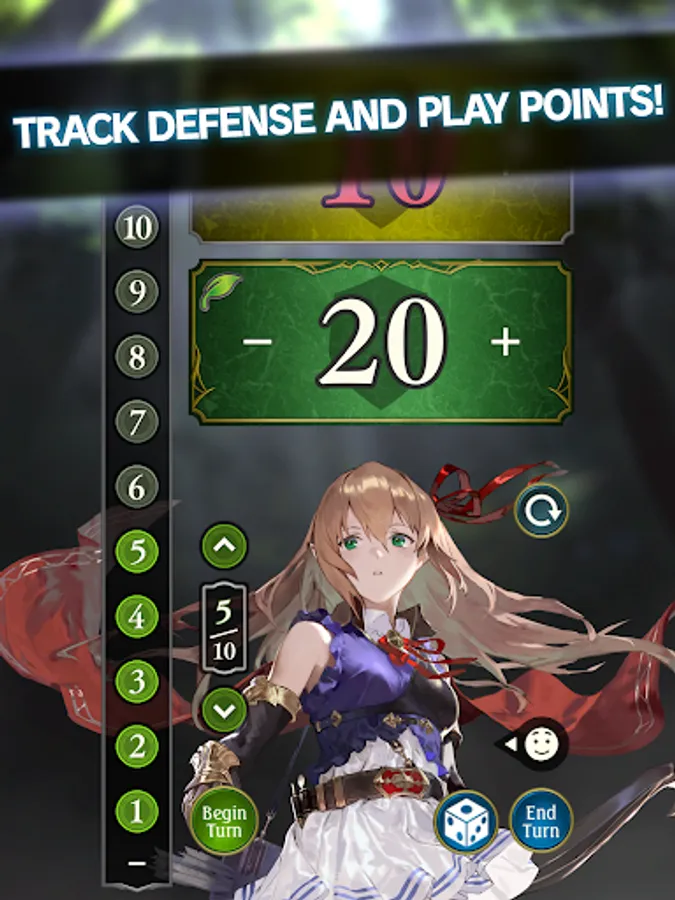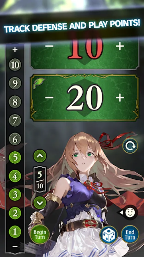 No more memorizing or moving rings on the playmat! Easily keep track of your leader's defense and play points from within the app.
