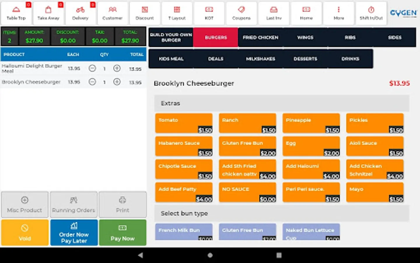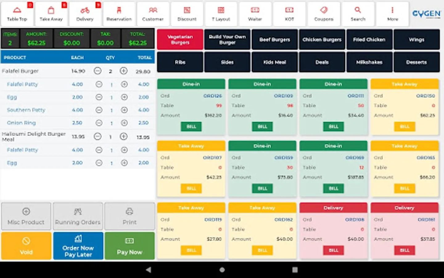 Cygen Dine-In POS Screenshots