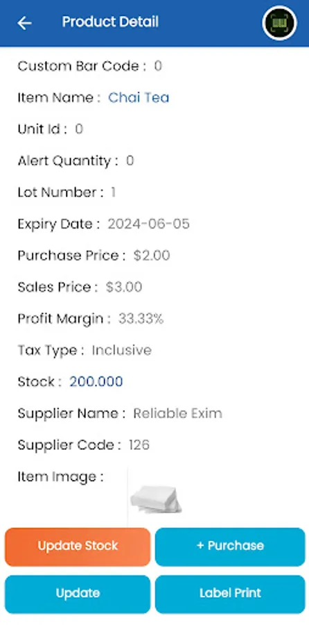 In this stocktake application you can add products with stock and expiry dates. You can print labels for retail outlets. You can also scan barcodes to see your product details.