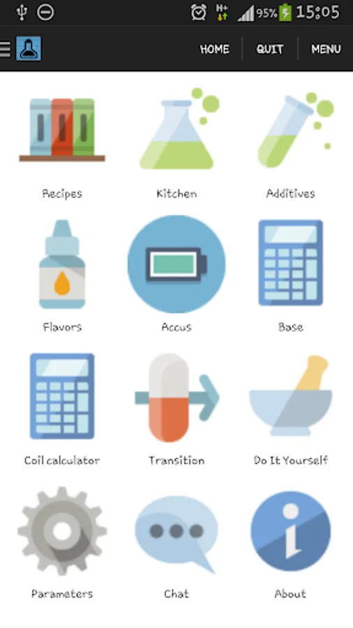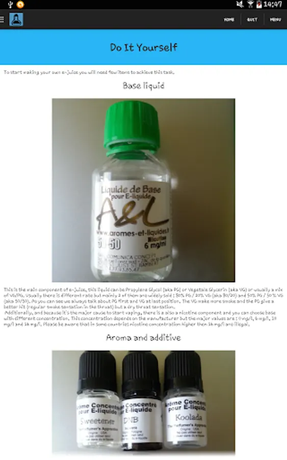 This app give let you manage easily your diy e-juice and give you the informations about e-cigarette and e-liquid.